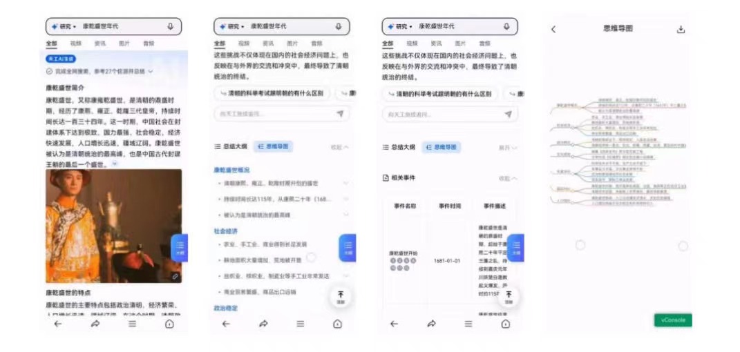 研究模式:在研究模式中,「天工3.0」能够围绕用户的某个简单指令进行相关问题的延伸,自动生成研究大纲、图谱、实践总结、思维导图,帮助用户快速清晰地把握核心内容,完成用户复杂的研究需求。