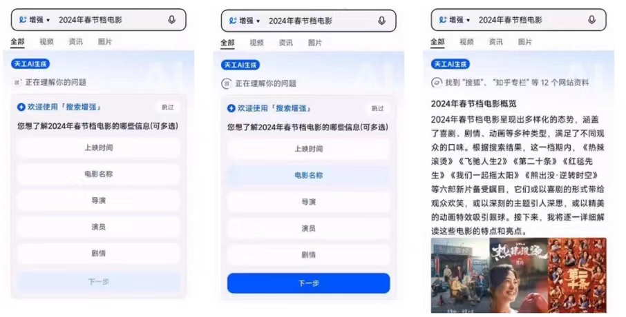 (Query:2024年春节档电影;「天工3.0」理解并追问用户需求)