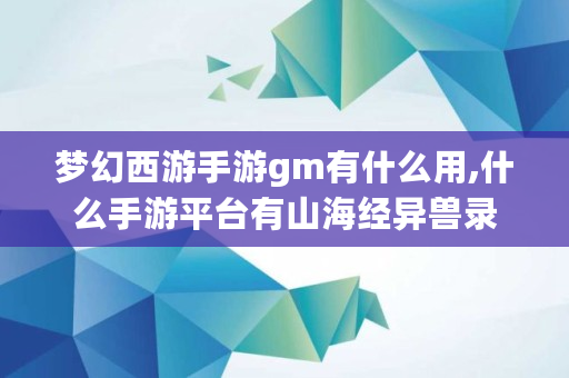 梦幻西游手游gm有什么用,什么手游平台有山海经异兽录