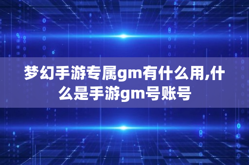 梦幻手游专属gm有什么用,什么是手游gm号账号