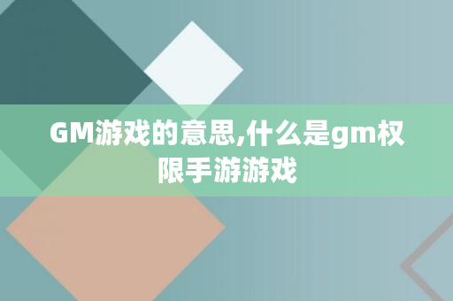 GM游戏的意思,什么是gm权限手游游戏