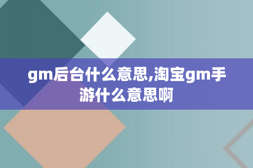 以上内容就是关于淘宝gm手游什么意思的问题全部解答了,如果对你有所帮助的话,请收藏关注本站,这里将更新更多关于淘宝gm手游什么意思的内容。
