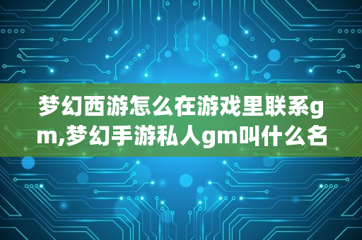 梦幻西游怎么在游戏里联系gm,梦幻手游私人gm叫什么名字