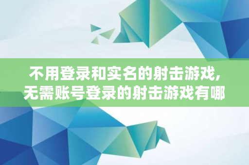 不用登录和实名的射击游戏,无需账号登录的射击游戏有哪些手游