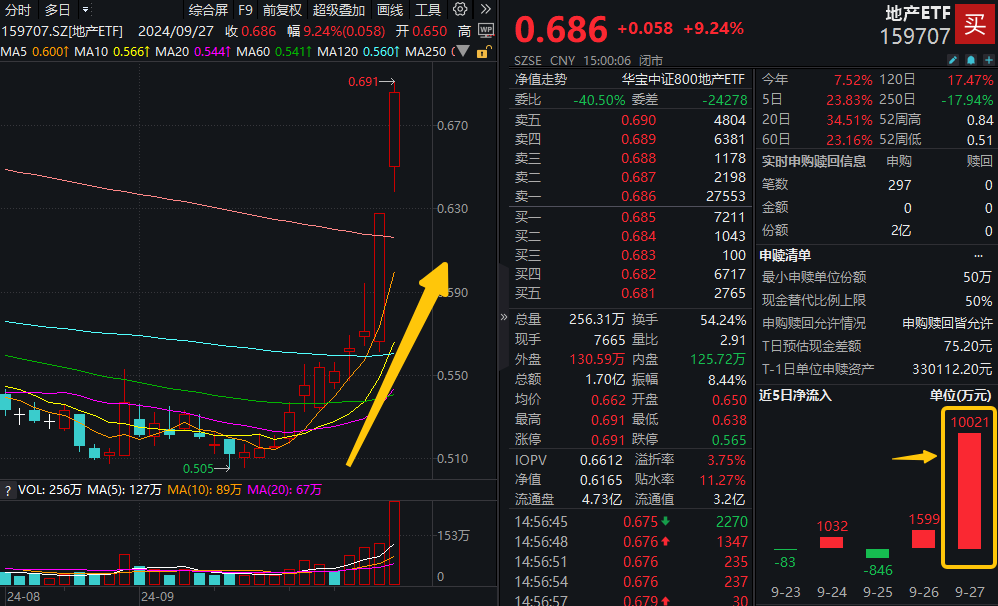 地产ETF早资讯|连环王炸政策,地产爆点时刻!资金扎堆买入,地产ETF(159707)斩获11连阳,单日获1亿元净申购