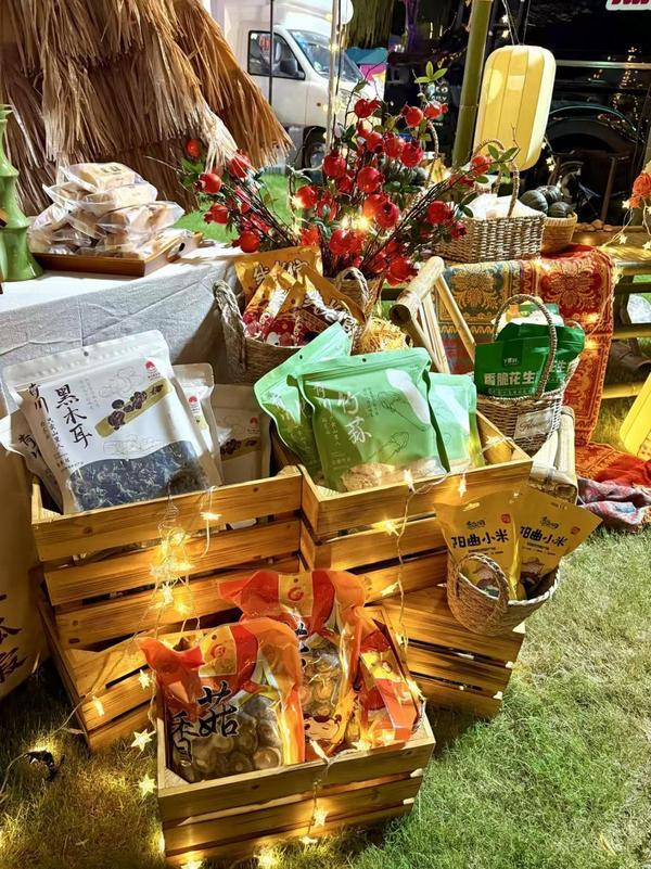 值得一提的是,在此次戏剧节的热闹氛围中,“谦寻环游记”的集市摊位成为了一道独特的风景。观众们可以买到公益助农产品,如云南米线、随州香菇、青川竹荪、阳曲小米、下姜村花生等,国货品牌锋味派烤肠、奶茶等,还有谦寻自营品牌贝贝南瓜、鸡蛋糕等。