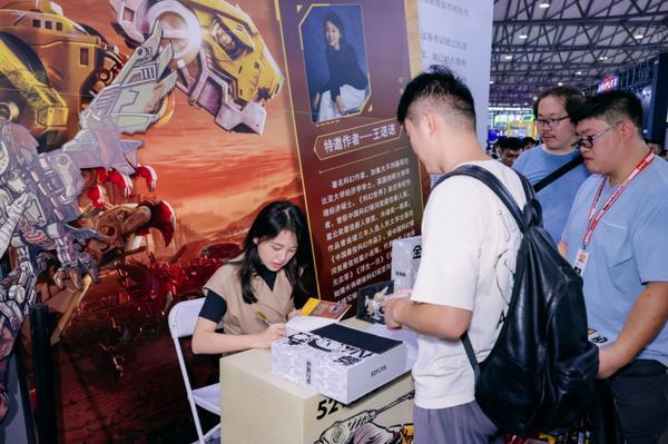 现场一位排队等候签售的玩家表示,以前收集猛兽匣是为了变形的乐趣,现在看着“狄奥”模型,能立刻想到它在小说里的情节。这种情感连接的建立,正是 52TOYS 推出官方小说的核心诉求。2023 年,52TOYS 正式启动内容生态搭建,邀请《三体》世界观打造原班人马参与策划,最终促成小说与漫画的相继落地。