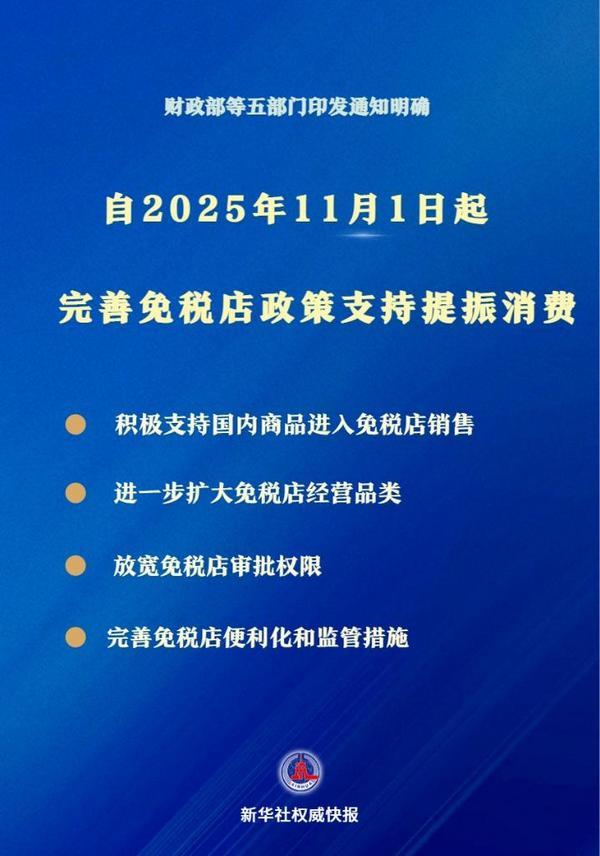 记者10月30日从财政部了解到,财政部等五部门印发通知,明确自2025年11月1日起完善免税店政策。