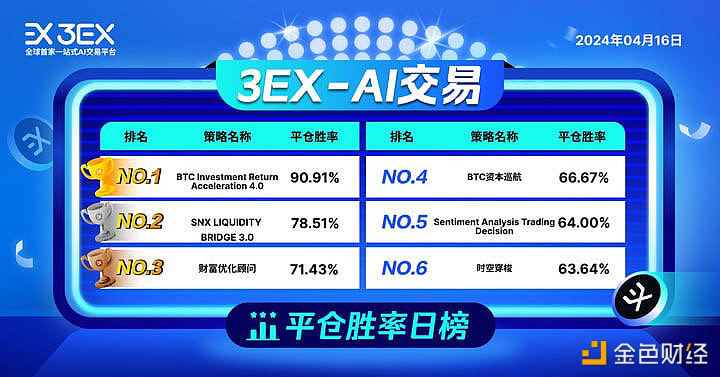 4月16日消息,。截止目前,累计平仓胜率排名前三的AI交易策略为: