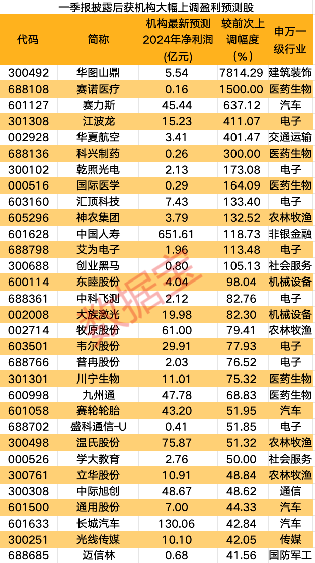 (原标题:一季报披露后,这些股获机构大幅上调全年业绩预测!每股收益最大调高超78倍)