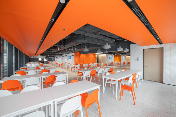 而除了员工主办公区,食堂、健身房、报告厅、空中图书馆、睡眠舱、新能源车充电桩等设施一应俱全,从“衣食住行”等方面给予员工全方位的舒适体验。多项新技术也应用在新大楼当中,以营造高效智慧办公体验,例如大楼全面应用集“信息发布、人脸识别、设备控制” 于一体的空间场景交互屏,实现多屏合一。