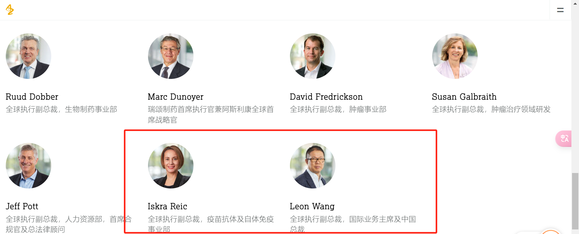 12月4日,阿斯利康宣布任命Iskra Reic为全球执行副总裁、国际业务负责人,全面负责包括中国、亚洲和欧亚市场、中东和非洲、拉丁美洲、澳大利亚和新西兰在内的地区整体战略。Iskra将接替王磊,王磊因在中国接受调查而继续暂离工作岗位。