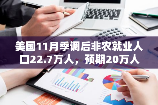 美国11月季调后非农就业人口22.7万人,预期20万人 更新时间:2024-12-07 07:32:00 •阅读 0 BlockBeats 消息,12 月 6 日,美国 11 月季调后非农就业人口 22.7 万人,预期 20 万人,前值由 1.2 万人修正为 3.6 万人。(金十)