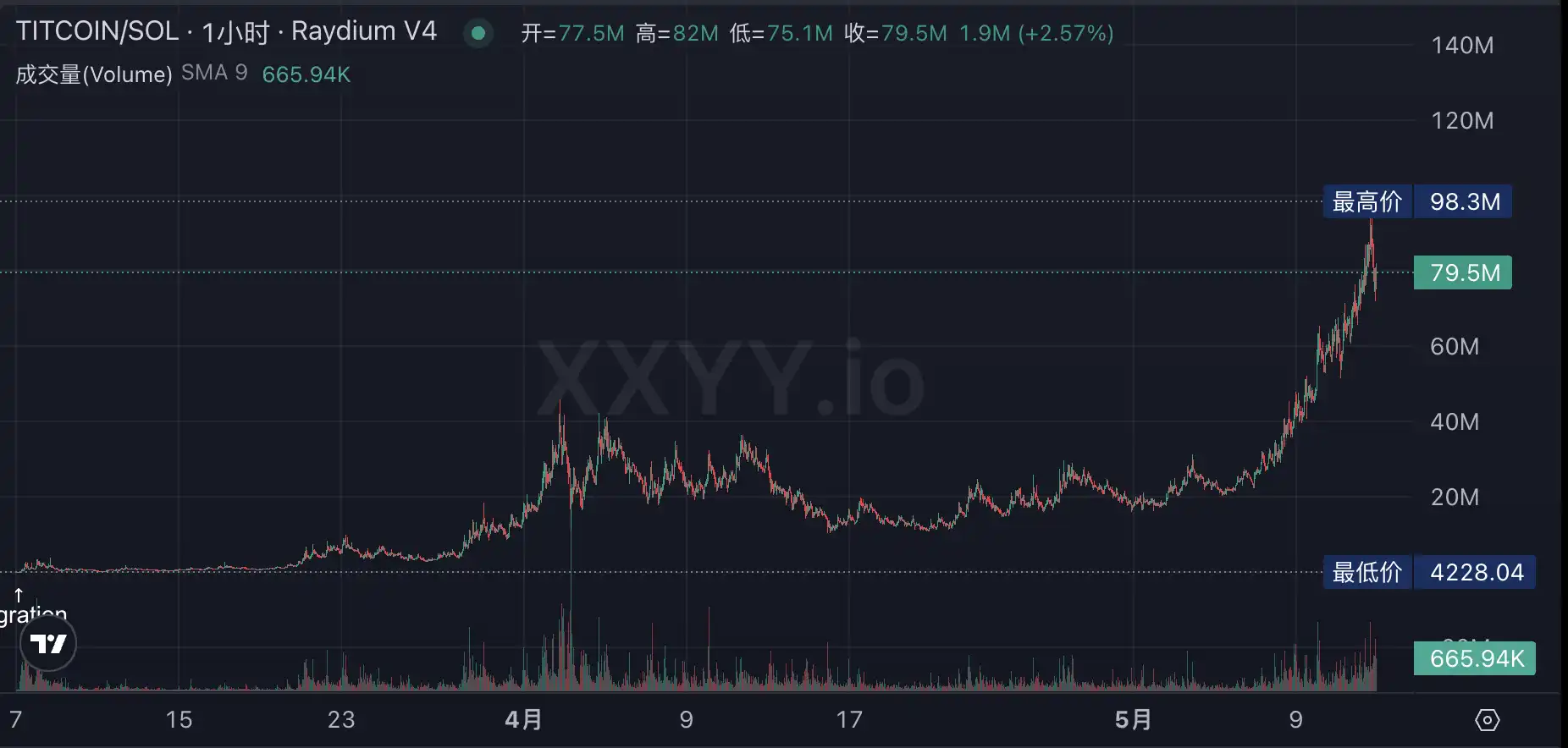 另外同样亮眼的就是 COIN 类「仿盘」TITCOIN,这个十足的「阴谋盘」在初期凭借着「擦边」维持着相当不错的流量数据,而背后的资金一边建设社区一边活活在熊市拉出一个几乎「只涨不跌」的盘面,从 3 月份到 5 月份累积了 22000 个持有者社区。