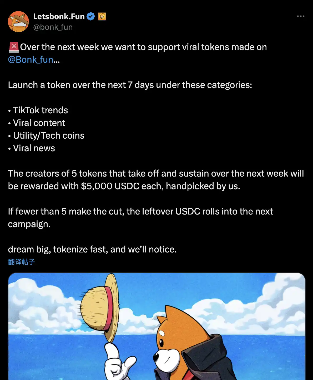 自从 5 月 11 日 BONKFUN 发布接下来一周对 5 个「起飞」代币提供 5000 美元的奖励,周边成员便开始疯狂支持各种 Meme 的社区,也有大量华语 KOL 玩家与其联动,也因此出现许多「中文」叙事在 BONKFUN 的主页。