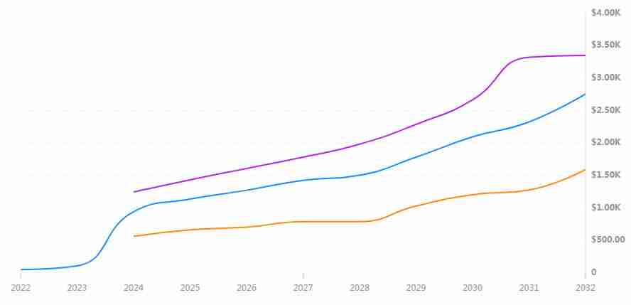 | 年份 | 最低价格 (美元) | 最高价格 (美元) | 平均价格 (美元) | 潜在收益率 (基于当前价格) |