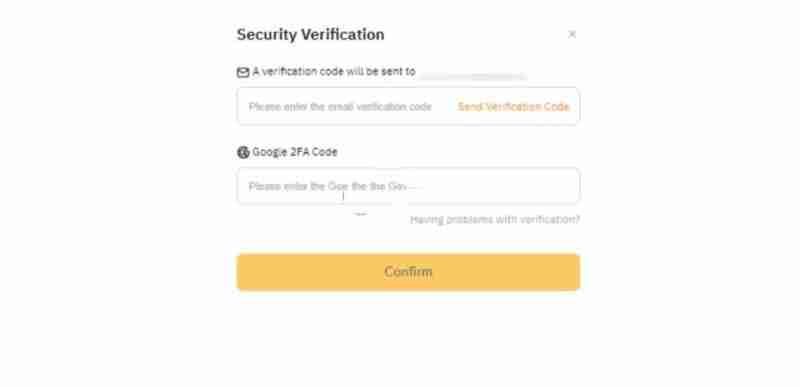 6、输入您的电子邮箱地址和谷歌双重身份认证码,然后点击确认。点击发送验证码,以接收邮箱验证码。如果在完成电子邮箱验证时遇到任何问题,请参阅此故障排除指南。