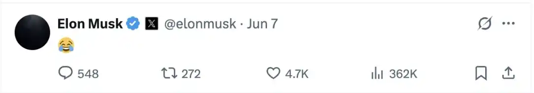 「特马斗」事件的最新进展是,马斯克与特朗普再度成为盟友,这次二者将矛头共同指向了近期发生了骚乱的加州,尤其是洛杉矶。在加州洛杉矶发生大规模骚乱之后,特朗普第一时间在 Truth Social 平台发声,随后美国副总统万斯在 X 平台转发了该言论,并表示:「这一时刻需要果断的领导。总统不会容忍暴乱和暴力。」马斯克随后快速跟帖转发,并配上了「」的标志。