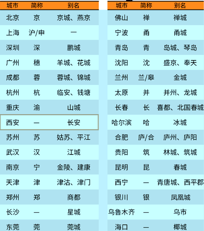 值得注意的是,相比特殊简称,近年来部分城市的别名也越来越为人知晓。比如,长沙的“星城”,西安的“长安”等等。有人认为,这在一定程度上弥补了一些城市因缺乏简称或简称辨识度过低而引发的尴尬。