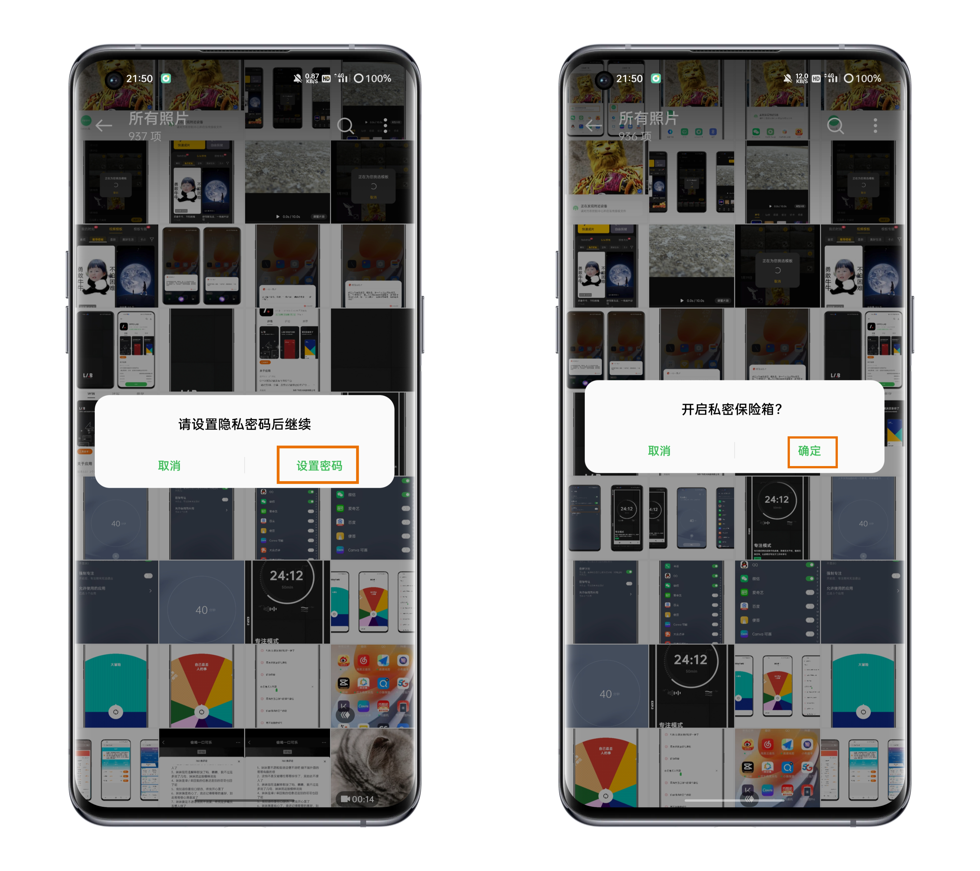 首次开启私密保险箱需要开启,开启后我们需要设置私密保险箱的密码,之后设置找回密码的密保问题,之后可以自行选择是否关联职位或人脸验证,之后就可以开启私密保险箱了,可以让涉及隐私的照片更加安全。
