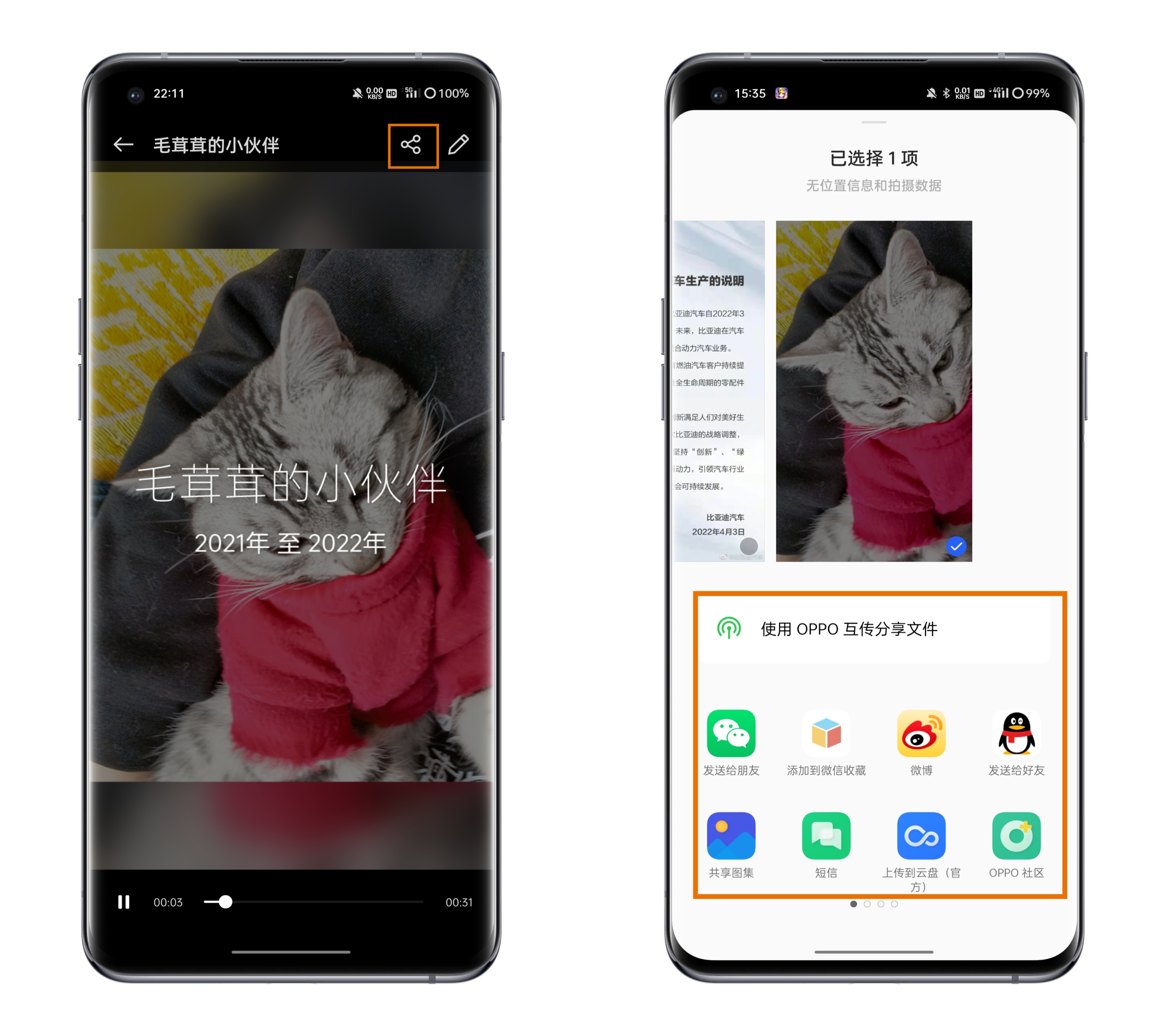 视频做完以后我们就可以进行分享了,我们在视频右上角点击分享按键,就可以跳转到分享页面,直接一步到位分享,简直不要太方便哦~
