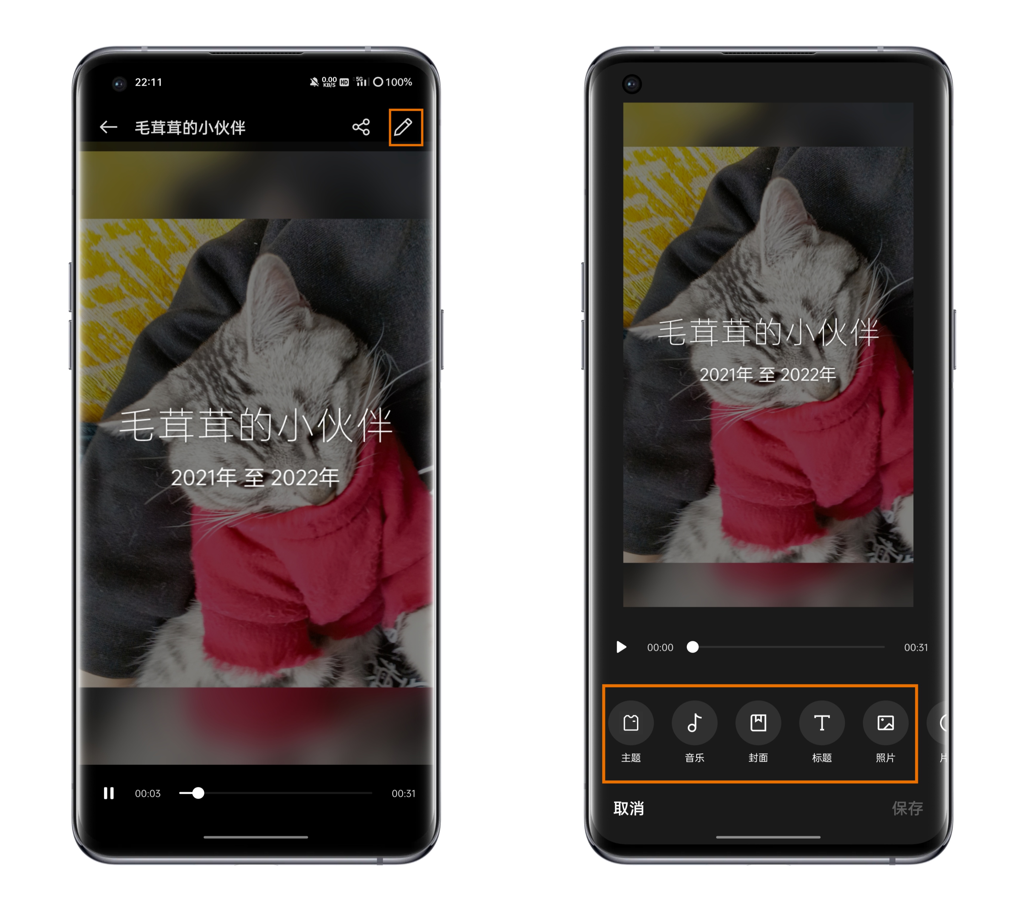 以为照片编辑完就可以了吗?不不不,我们还可以对其自动生成的视频进行修改,我们可以修改视频中的音乐、封面、标题、照片和片长等操作,当然,如果你觉得这样修改太麻烦,我们可以直接套用主题模板,里面有很多可以选择,完全可以满足你对视频的要求。