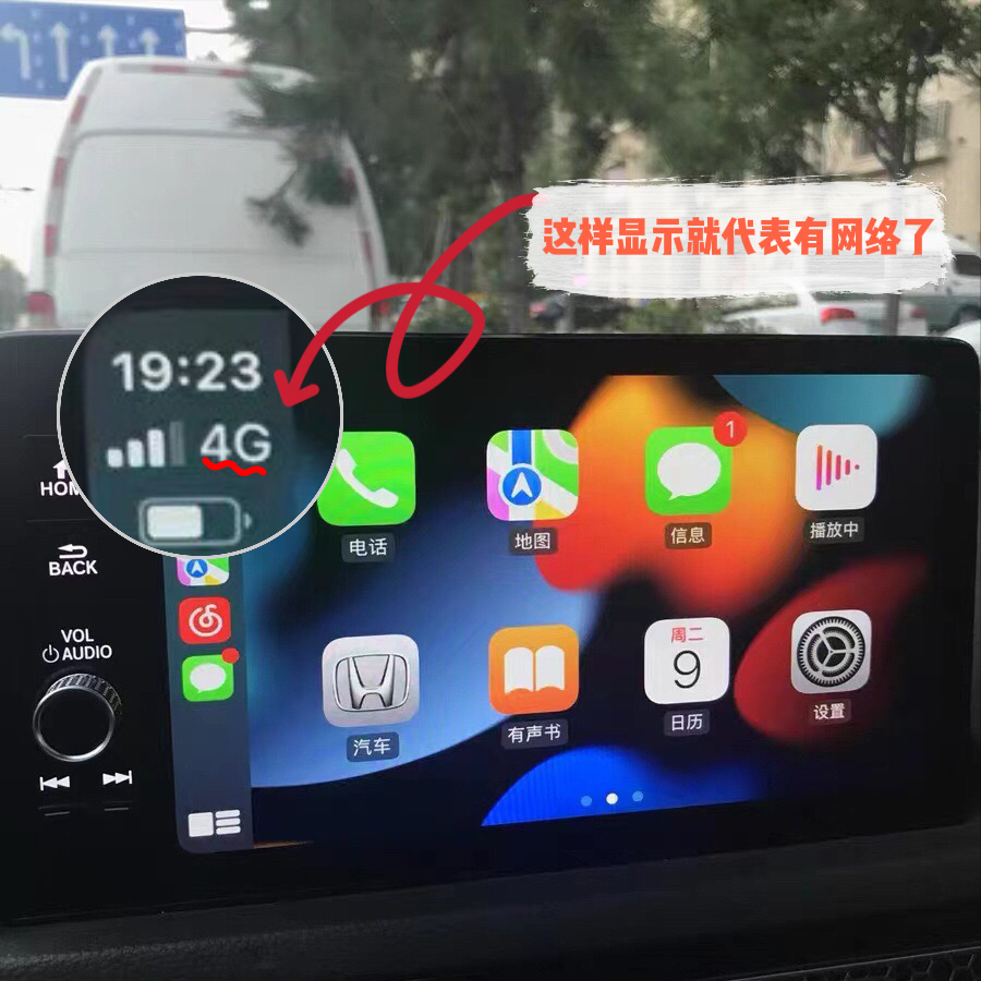 然后CarPlay会自动断开,一会便会自动连接回来了,在车载屏幕左上角看到有4G或者5G标识的时候说明就有网了