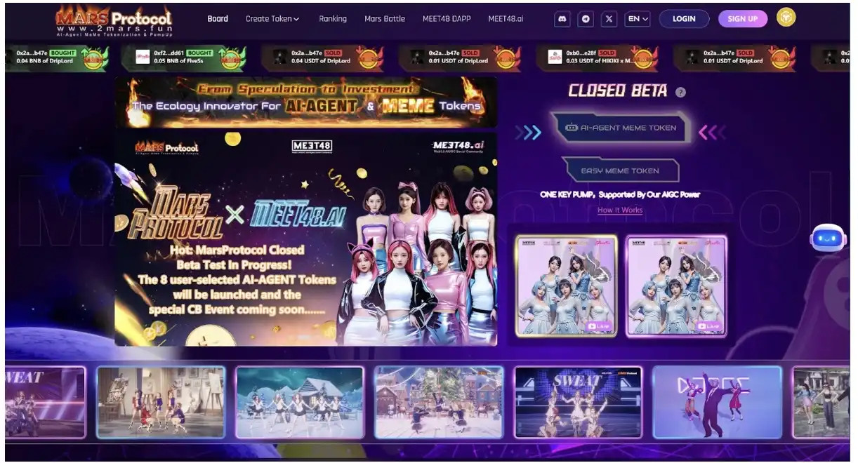 在 WIPA 之外,MEET48 还将按照已经发布的生态规划 Roadmap 为用户带来更多产品策划。在 2025 年 Q3,MEET48 将持续建设基于 BSC 生态的 AI-Agent 和社交养成币发射平台 Mars Protocol。AIdol Producer(AI 偶练房)将为用户提供一键定制具备自主交互能力的虚拟偶像 AI Idol-Agent,实现聊天、直播、虚拟演出等多种功能,并利用全球领先的虚拟音乐舞蹈垂直领域 AIGC 技术高效生成 AI 图文、歌曲、舞蹈内容。