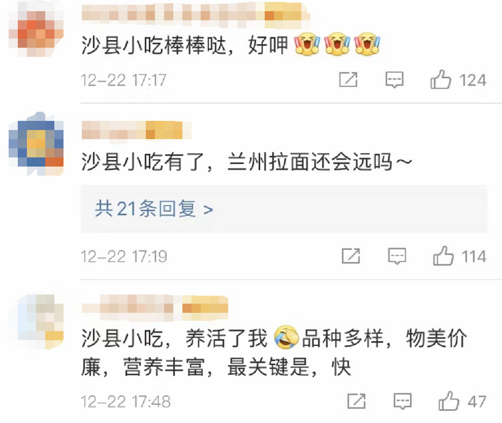 在评论中,不少网友都表示了自己对沙县小吃的喜爱,甚至还有网友替“兰州拉面”操起了心。