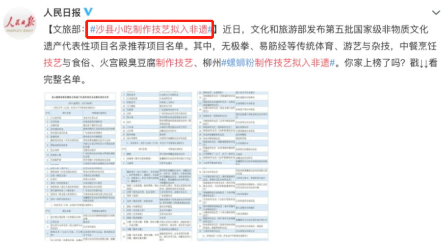昨天(12月22日)下午,沙县小吃突然登上热搜,天眼妹点进去一看,发现原来是这两天,文化和旅游部发布了第五批国家级非物质文化遗产代表性项目名录推荐项目名单,其中沙县小吃的制作技艺赫然在列。