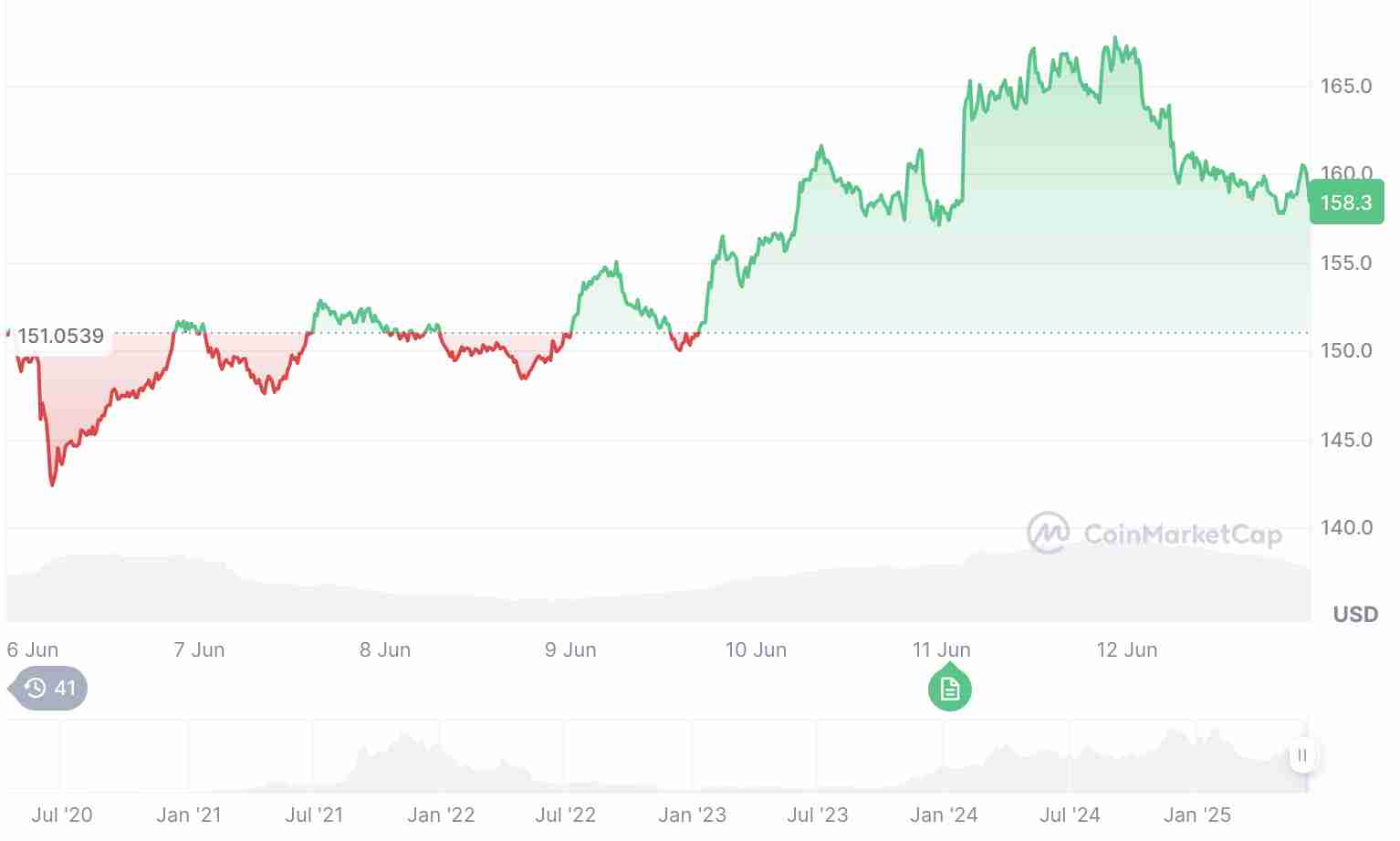 2025年6月,Solana的价格成为各大媒体的头条新闻,交易员和分析师纷纷猜测,这款电子山寨币能否创下历史新高。过去24小时内,受ETF审批传闻不断升温以及里程碑式机构采用的推动,Solana的美元价格已从158美元飙升至164美元。在短短四个月内,SEC可能批准Solana现货ETF的消息传出后,加密货币的投机行为愈演愈烈。与此同时,法国银行巨头法国兴业银行选择Solana作为受监管的链上稳定币,这进一步印证了其有效性。