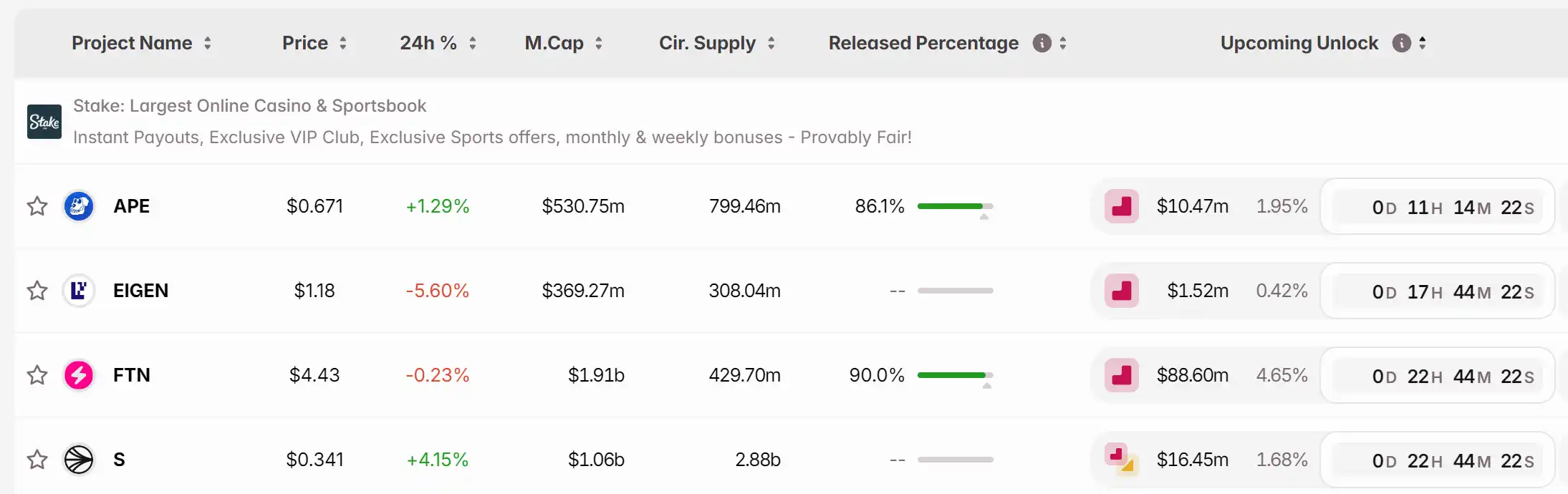 每日市场整体资金热度(根据资金费率反映)与代币解锁