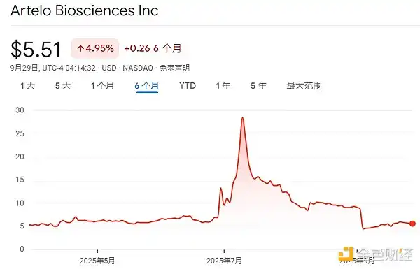 Artelo 股价最高曾涨至近 30 美元,截至发稿报 5.51 美元。