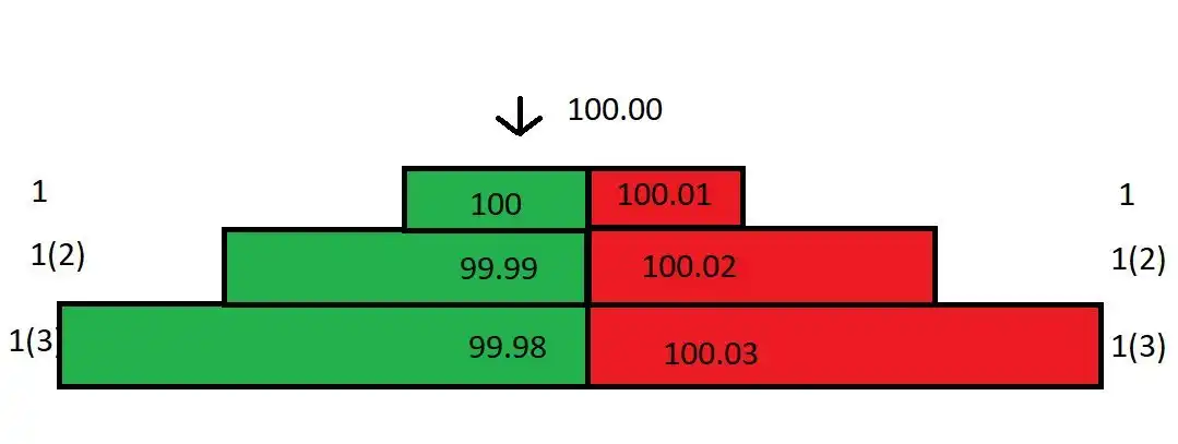 尽管你的买一 (100) 和卖一 (100.01) 的 spread 只有 0.01,但是实际利润高达 0.03!