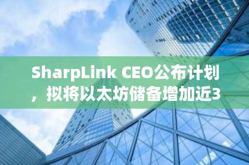 SharpLink CEO公布计划,拟将以太坊储备增加近30亿美元。