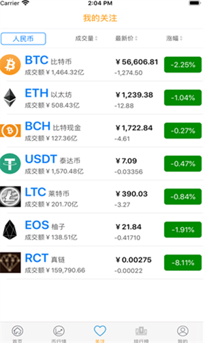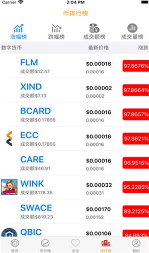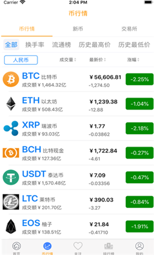 3、查看应用程序为您准备的货币市场数据,您可以清楚地了解每一种数字货币的崛起情况。