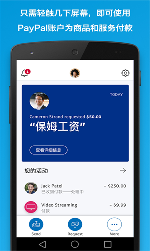 3、全球付款更轻松PayPal移动支付应用可让您轻松付款到全球。
