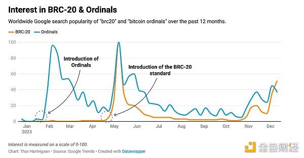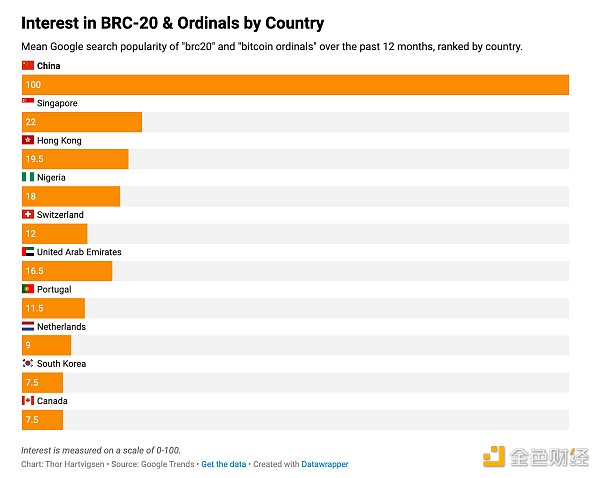 来自各个在线社区的轶事证据和来自搜索引擎的数据表明,这些趋势的突破主要发生在中国。中年人甚至奶奶也开始加入进来,学习如何购买和交易 BRC-20 代币。