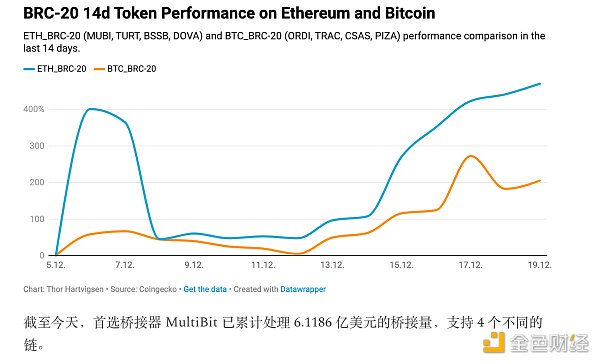 许多 BRC-20 代币通过桥接通道登陆了以太坊,吸引了大量投机者,一些热门代币的日涨幅甚至达到两位数,而在经历了一段上涨期后,比特币的交易活动则处于冷却阶段。