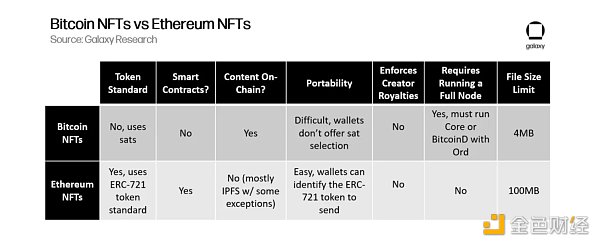 与以太坊等链上广泛使用的 NFT 相比,序数 NFT 完全不同。