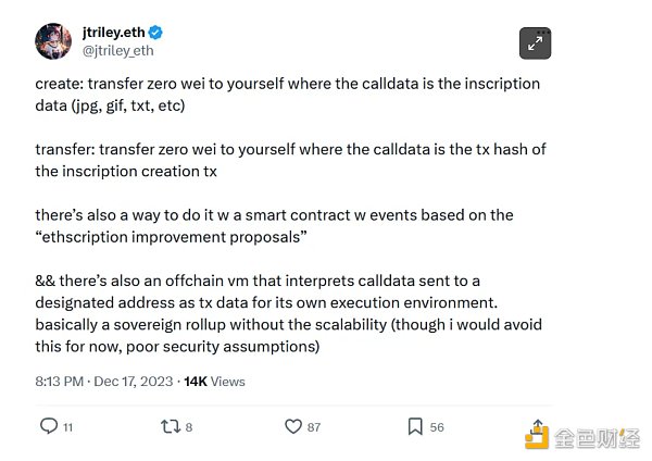 那么,除了比特币之外,铭文还有哪些应用场景呢?jtriley.eth 在推特上给出了一个简洁明了的解释: