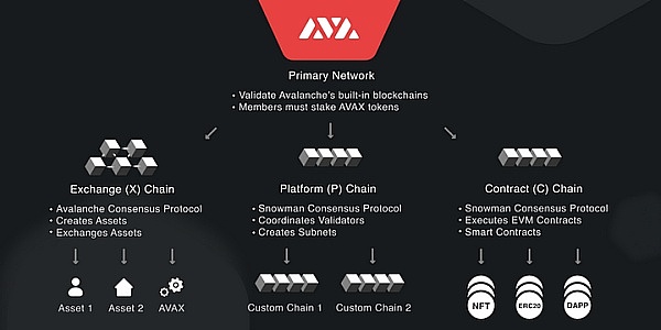 另外,Avalanche 与大部分现存公链不同,由三条平行的公链所组成,三条链各司其职,共同创造出快速且能方便DeFi 搭载其上智能合约的平台。