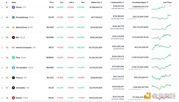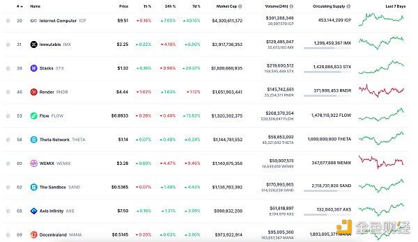 24小时NFT交易量、交易量前十项目 数据来源:Coinmarketcap