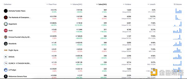 24小时内销售前十的NFT 数据来源:NFTGO
