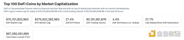 1、DeFi代币总市值:757.01亿美元