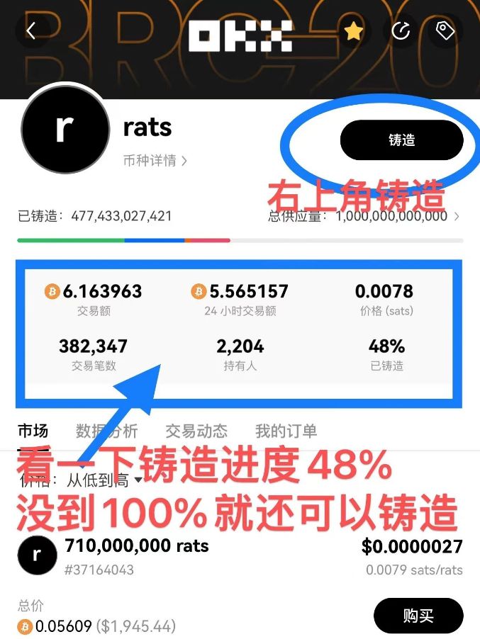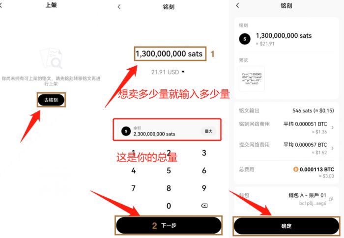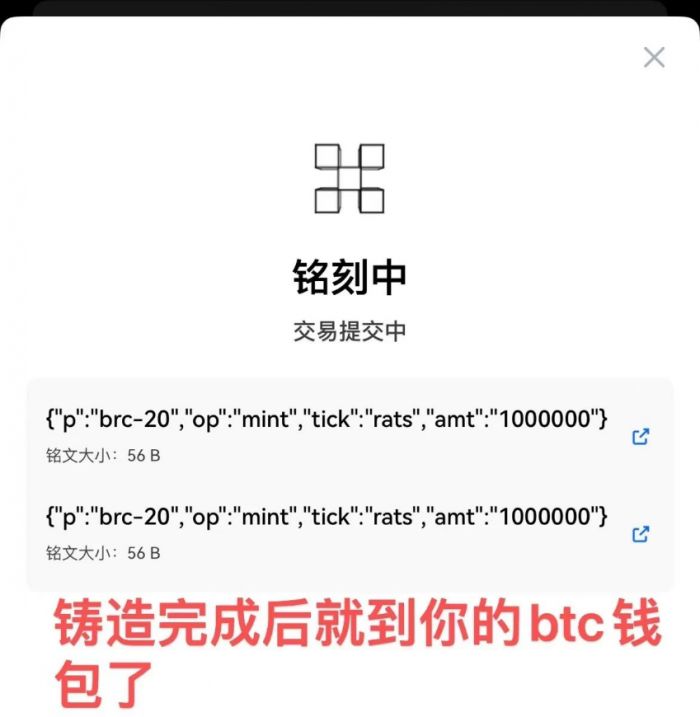 BTC钱包铸造完成后,就可以在交易所买BTC转载到这个钱包地址,转载先小金额测试,收到后,再转大笔金额,然后就可以去铸造铭文了。