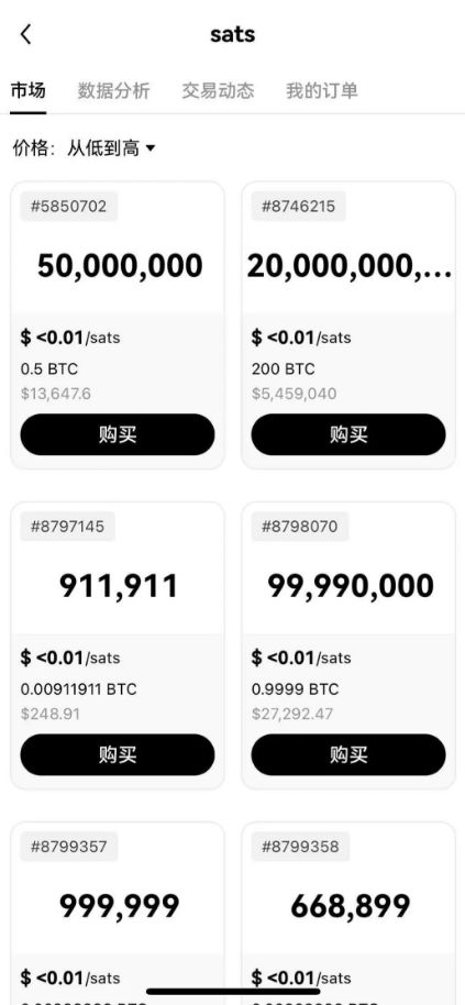 先到首页看看当前地板价是多少,比如sats现在价格是0.015聪。