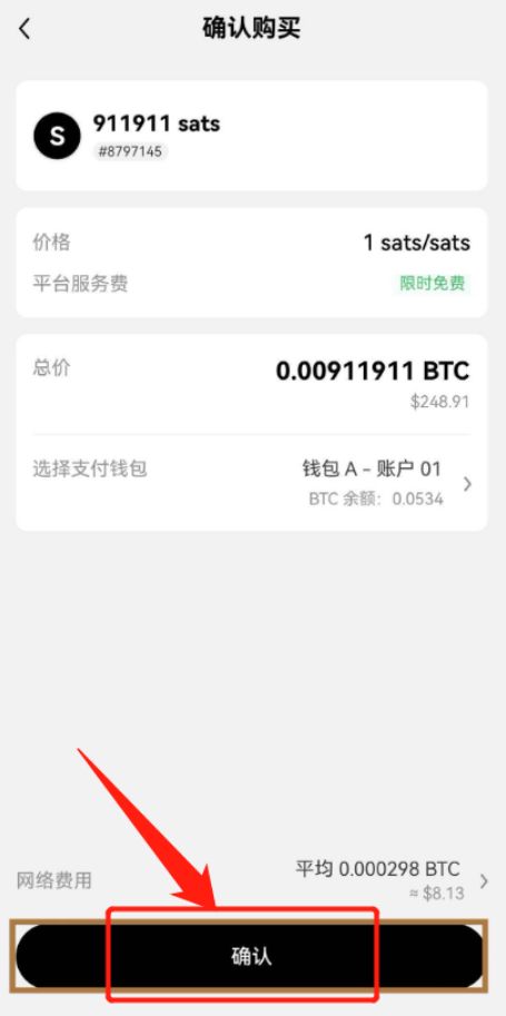 3、在确认手续费和价格后点击【确认】下单,就购买成功了。