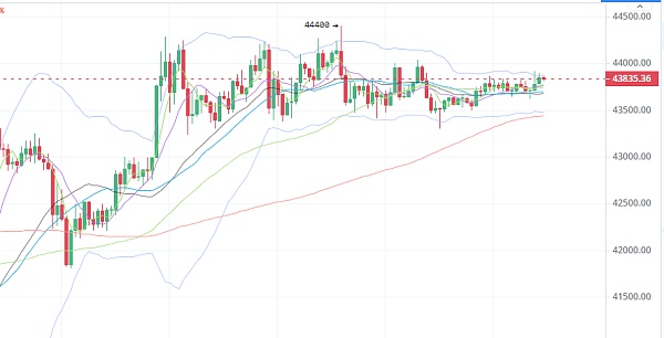 本周即将结束,新的一周即将开始,回顾本周的市场行情,整体呈现冲高回落的走势。比特币在高位震荡中开始盘整,小时线级别来看短期币价会处于44500-43500区间来回整理。那么直观的说币价给到临近点位,短线交易我们都可以进场高抛低吸。止损点300 ,目标500-800点做保护或短线离场,落袋为安。那么稳健交易个人建议在回落接多为主,目标走势还不明朗,预判会有一次下杀的操作。所以我们可以考虑在40000-41000区间参考布局多单。