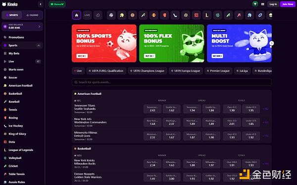 @kinekobet ( #KNK)一家拥有赌博许可证和 DeFi 集成的在线菠菜公司,赌场各类纸牌游戏和体育菠菜。拥有 #KNK 代币可以让您获得收入分成和治理权。同时赌场利润的 33.33%用于回购销毁 #KNK 代币。菠菜一直是游戏细分赛道的枪手戏。尤其是拥有众多体育赛事项目的体育菠菜,往往具有很强的吸金能力。